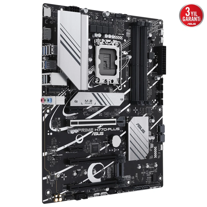 ASUS Prime H770-PLUS, Intel® H770 LGA 1700 ATX anakart, PCIe 5.0, üç adet PCIe 4.0 M.2 yuvası, DDR5, Realtek 2.5Gb Ethernet, DisplayPort, HDMI™, USB 3.2 Gen 2 Type-C®, Thunderbolt™ (USB4®) desteği ve Aura Sync