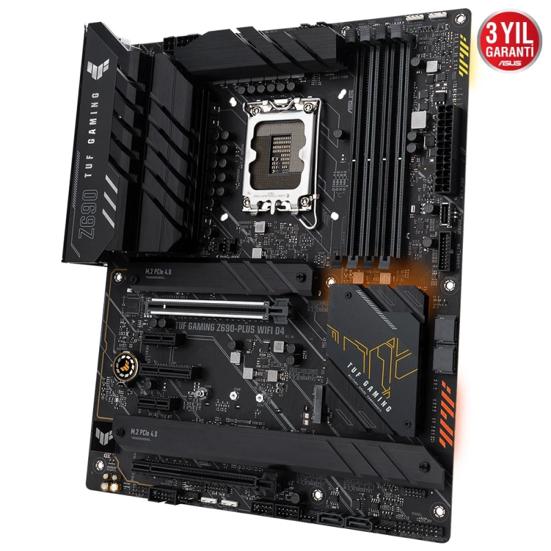 Dayanıklı. Kararlı. Güvenilir. ASUS TUF GAMING Z690-PLUS WIFI D4, en yeni Intel® işlemcilerinin en önemli unsurlarını alıp oyunlara yönelik özellikler ve kanıtlanmış dayanıklılıkla bir araya getiriyor. Askeri sınıf bileşenler, gelişmiş güç çözümü ve kapsamlı soğutma sistemiyle donatılan bu anakart, oyun maratonları için kararlı ve sağlam performans sağlıyor. Yeni TUF Gaming logosunu taşıyan TUF GAMING Z690-PLUS WIFI D4, taşıdığı sade geometrik tasarım çizgileriyle TUF Gaming serisini tanımlayan güvenilirliği ve kararlılığı yansıtıyor. TUF GAMING Z690-PLUS WIFI D4 oyuncular için geliştirildi.