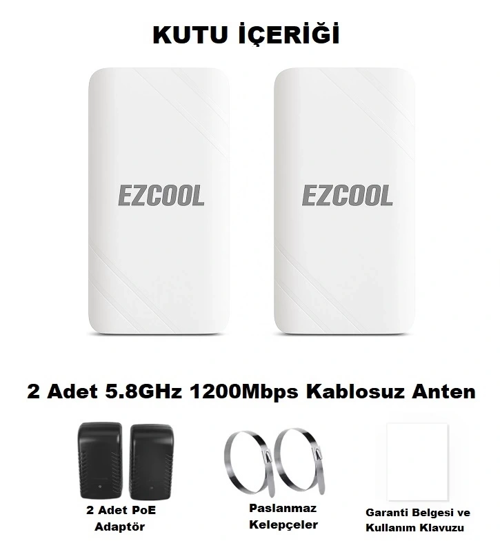 EZCOOL EZ-W580AN 5.8GHz 1200Mbps 1KM MENZİLLİ KABLOSUZ ANTEN AKTARICI